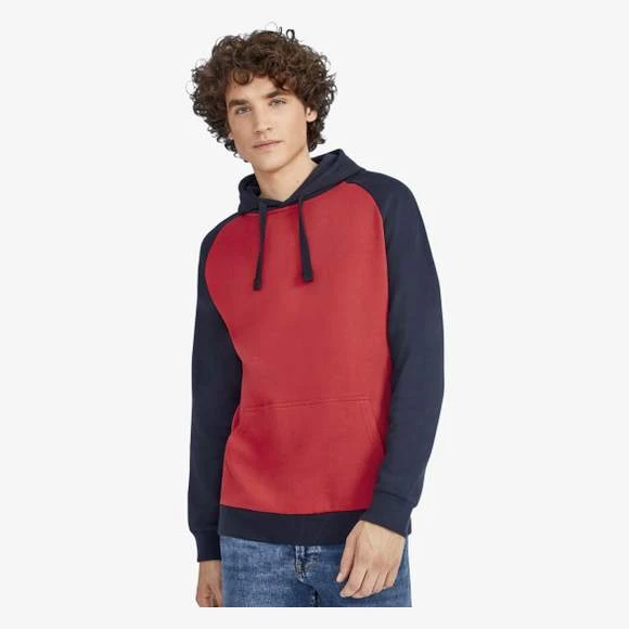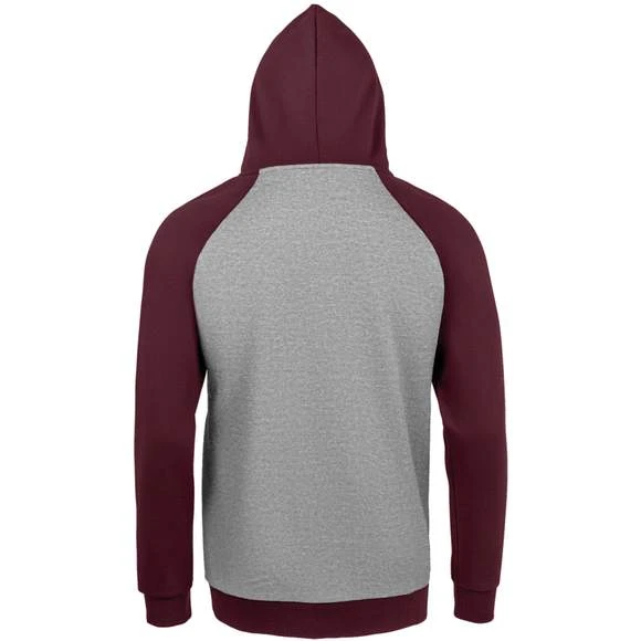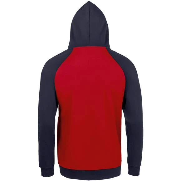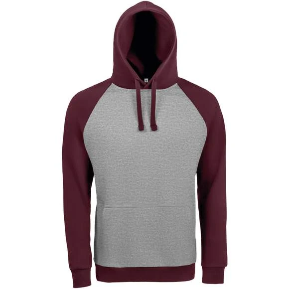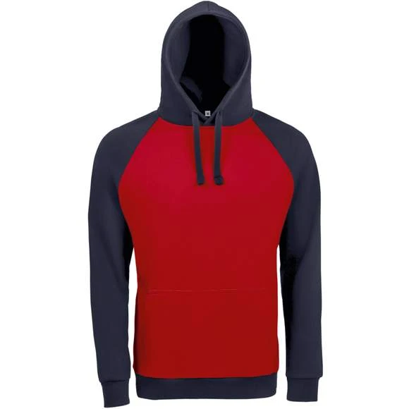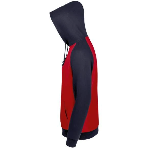 Sweat-shirt unisexe bicolore. MOLLETON 280 TECHNOLOGIE LSF (Low Shrinkage Fabric). 80% coton Ringspun – 20% polyester. Intérieur gratté. Extérieur 100% coton Bicolore. Manches raglan. Poche kangourou. Poignets et bas en bord côte. Capuche doublée, réglable avec cordon de serrage. Bande de propreté intérieur col. Grammage : 280g/m²
