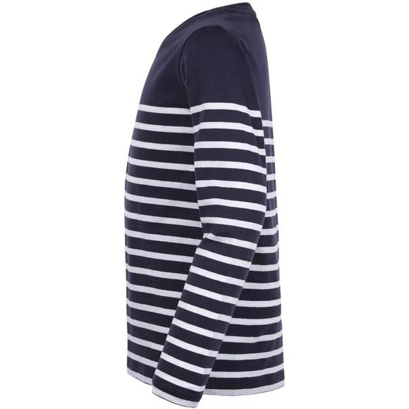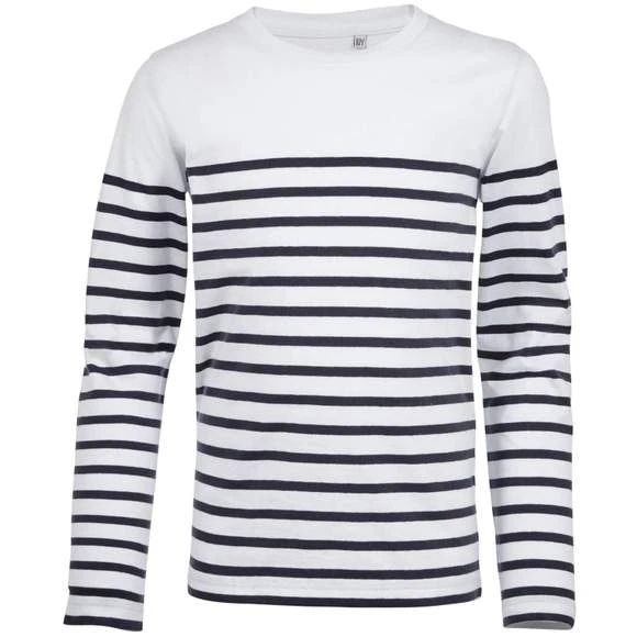 Tee-shirt enfant manches longues rayĂ©. col rond, coupe droite, coupĂ© cousu, rayures placĂ©es. 100% coton peignĂ© Ringspun. Enrichi d’un traitement d’enzyme pour un touchĂ© plus doux. Grammage : 160g/m²