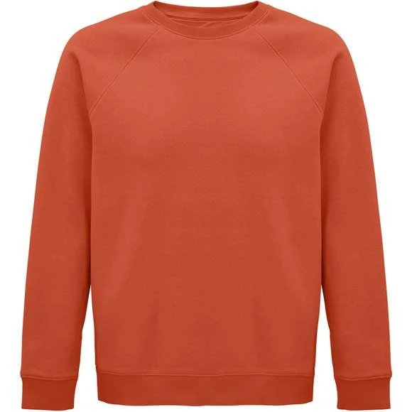 Sweat unisexe molleton gratté. 80% coton issu de l’agriculture biologique – 20% polyester recyclé 3 fils. Grammage : 280g/m²