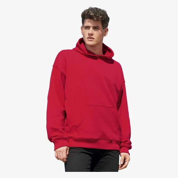 Sweat-shirt unisexe à capuche. Manches montées. Bord côte 2×2 aux poignets et bas du vêtement. Coutures latérales. Col croisé et poche kangourou. Capuche doublée matière principale. Bande de propreté intérieur col. Composition : 100% coton. Grammage : 450g/m²