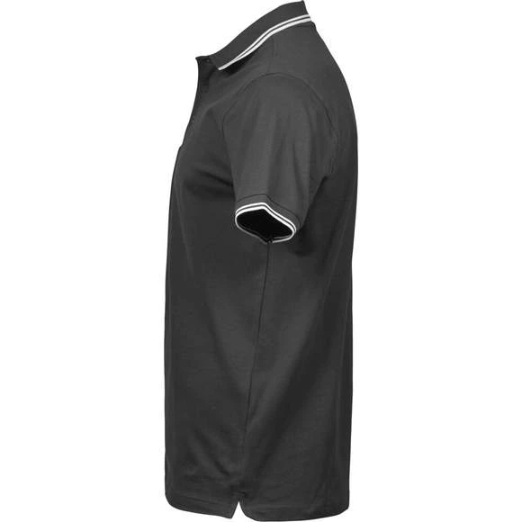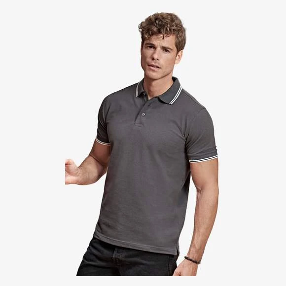 Polo homme col et manches contrastés. Maille piquée mini. Liserés contrastés sur col et manches. Col à côte tricoté avec Lycra. Pré-rétréci. Bande de propreté. Plaquette 3 boutons ton sur ton. Composition : 95% coton peigné Ringspun organique certifié et 5% élasthanne. Grammage : 215g/m²
