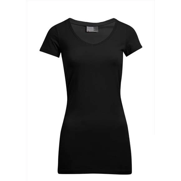 Tee-shirt 95 % coton single jersey 5 % élasthanne. Coupe ajustée et longue. Col V. Grammage : 180g/m²