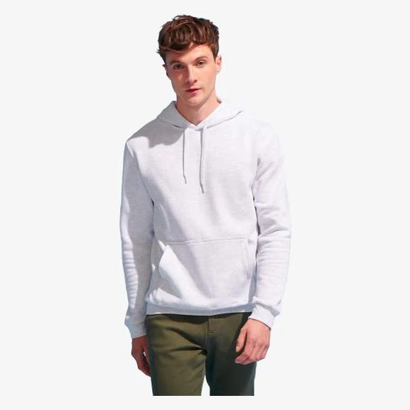 Manches montées. Poche kangourou. Capuche avec lacet ton sur ton. Grammage : 280g/m²