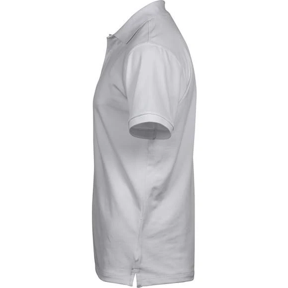 Polo en polyester recyclé et élasthanne. Coupe ajustée. Col plat en bords côte. Plaquette 3 boutons. Composition : 95% polyester recyclé certifié RCS, 5% élasthanne. Grammage : 187g/m²