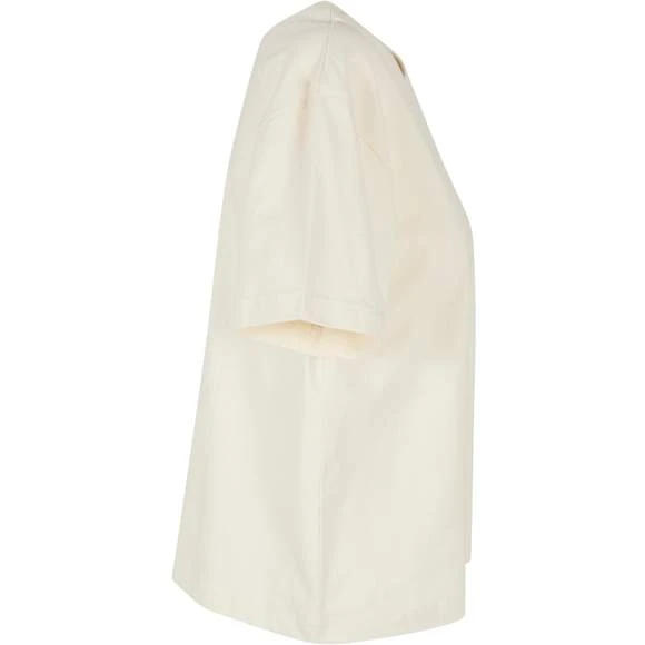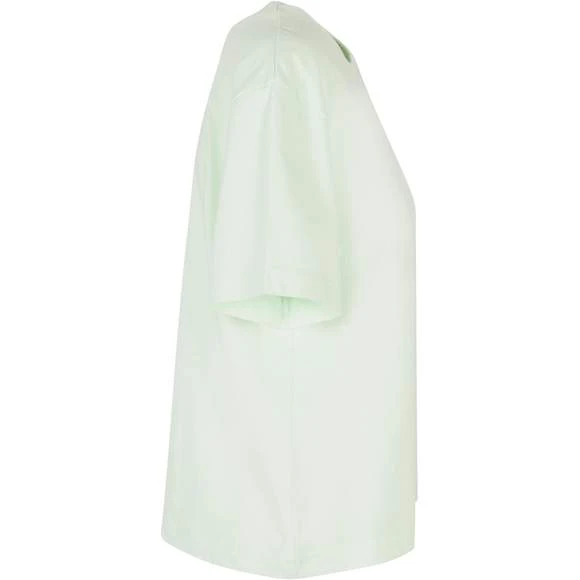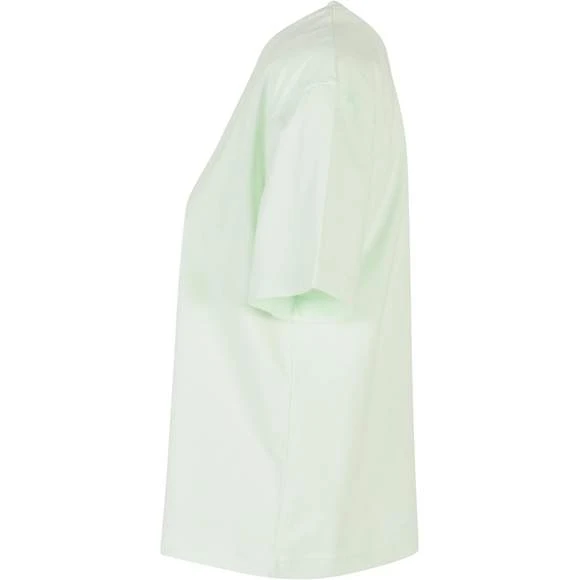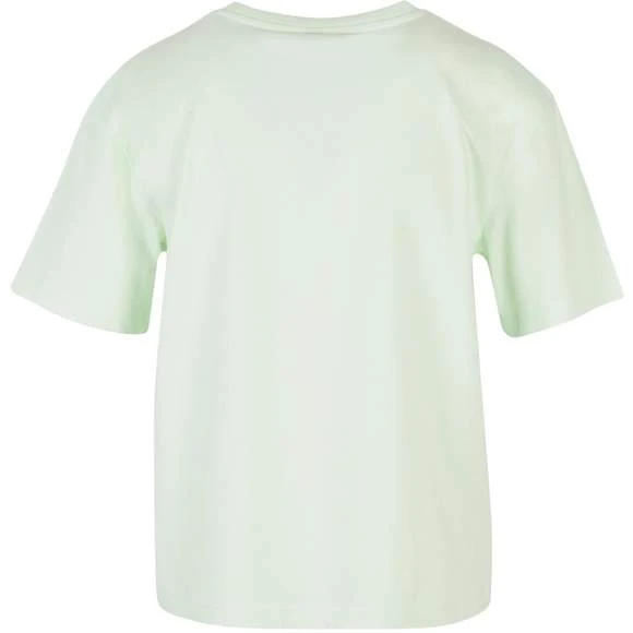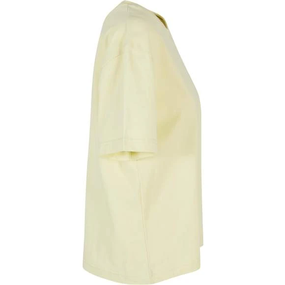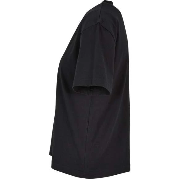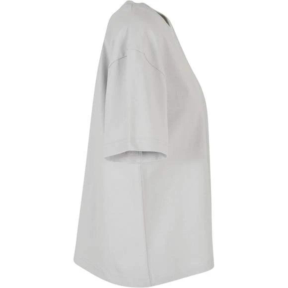 Le T-shirt femme uni à manches courtes présente une coupe oversize décontractée avec des épaules tombantes. Modèle confortable. Col rond côtelé. Composition : 100% coton. Grammage : 200g/m²