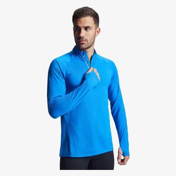 Sweat technique manches longues raglan pour homme. Intérieur gratté. Bande de propreté renforcée et contrastée à l´intérieur du cou. Demi zip inversé ton sur ton avec détail réfléchissant. Poignet avec ouverture pour le pouce. Le dos est légèrement plus long que le devant. Détail réfléchissant dans le dos. Composition : 94% polyester / 6% Elasthanne. Grammage : 200g/m²