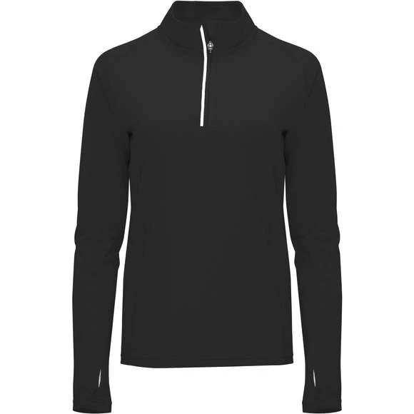 Sweat technique manches longues raglan pour femme. Intérieur gratté. Bande de propreté renforcée et contrastée à l´intérieur du cou. Demi zip inversé ton sur ton avec détail réfléchissant. Poignet avec ouverture pour le pouce. Le dos est légèrement plus long que le devant. Détail réfléchissant dans le dos. Composition : 94% polyester /6% Elasthanne. Grammage : 200g/m²