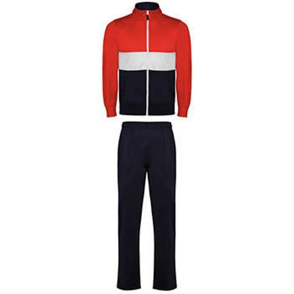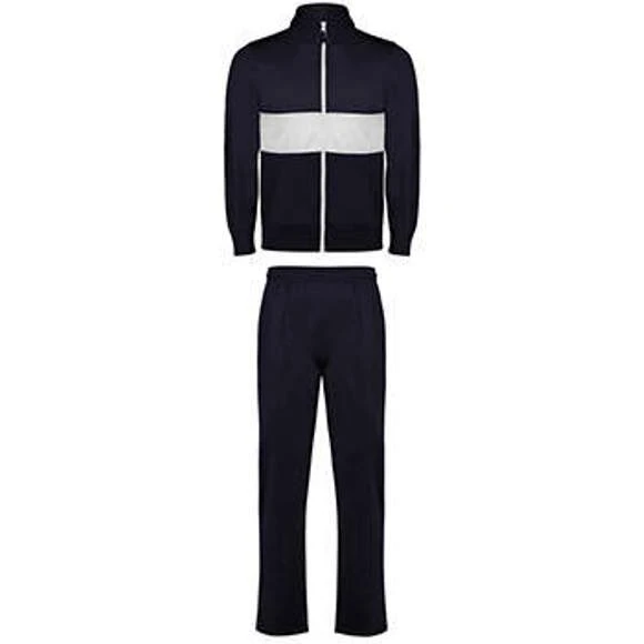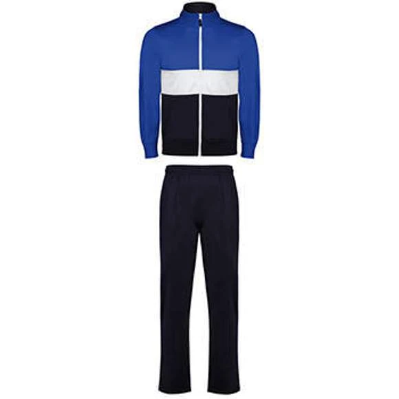 Survêtement deux pièces composé d´une veste et d´un pantalon. Col montant. Poches frontales avec liseré. Poignets et ceinture en côte 1×1. Fermeture éclair centrale ornementé par la couverture des coutures contrastée. Pantalon avec ceinture élastique et cordon ajustable avec point arrière de sécurité et deux poches latérales avec liseré large. Tissu intérieur velouté très confortable. Étiquette détachable. Spécial sublimation. Packs plusieurs pièces. Disponible en tailles enfants. Composition : 100% polyester. Grammage : 210g/m²