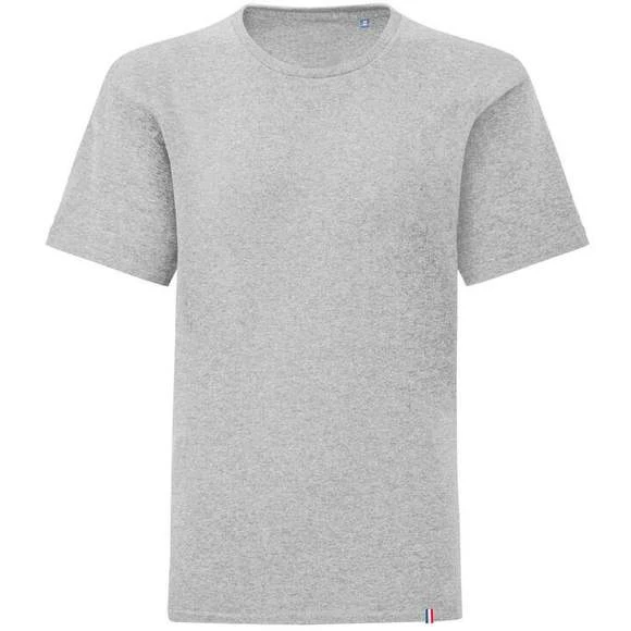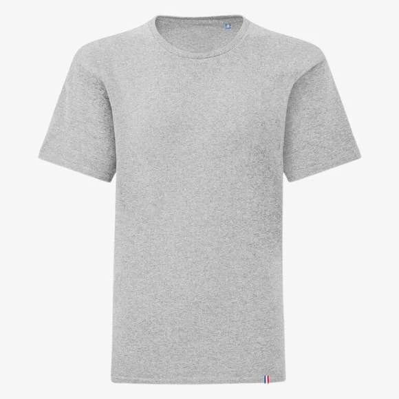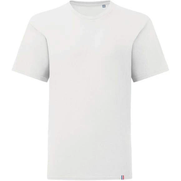 Tee-shirt bio, origine France pour enfant. Coupe cintrée. Col rond. Pas d’étiquette de marque, seulement une puce de taille au col. Composition cousue dans la couture intérieure latérale gauche. Coton peigné de belle qualité. Bande de propreté au col. Double surpiqure bas et manches. Drapeau tricolore sur la manche. Origine France garantie. Composition : 100% coton peigné jersey organique. Grammage : 190g/m²