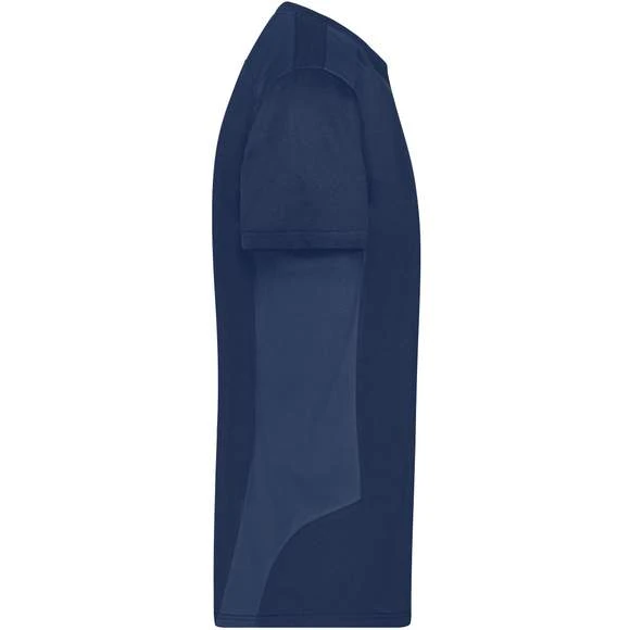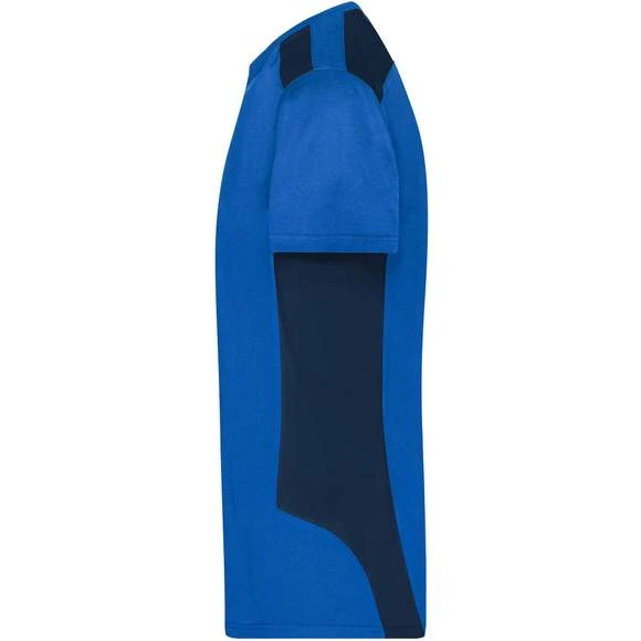 T-shirt durable et facile d’entretien avec empiècements contrastés en mélange de coton biologique filé à l’anneau et de polyester recyclé pour une forme et une résistance au lavage optimales. Empiècements latéraux et au niveau des épaules aux couleurs contrastées. Encolure avec élasthanne. Bande de propreté. Composition : 50% coton, 50% polyester. Grammage : 180g/m²