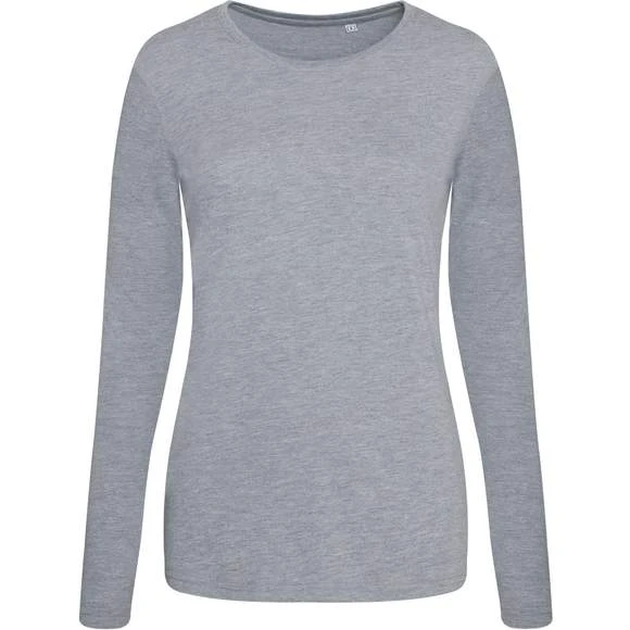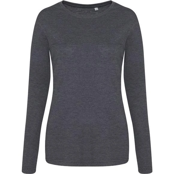 Tee-shirt femme à manches longues. Mélange de 3 tissus, pour plus de style et de confort. Col rond côtelé, coutures latérales, manches montées. Couture à double surpiqûres. Idéal pour la personnalisation. Production certifiée WRAP. Composition : 50% Polyester, 25% Viscose, 25% Coton. Grammage : 160g/m²