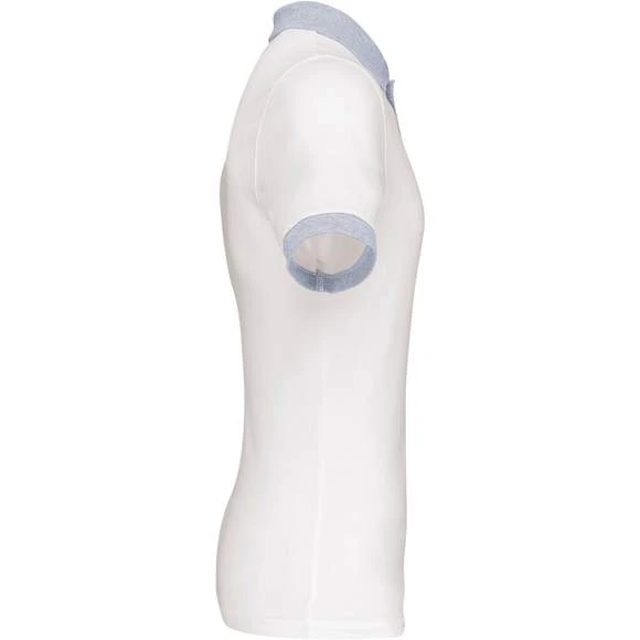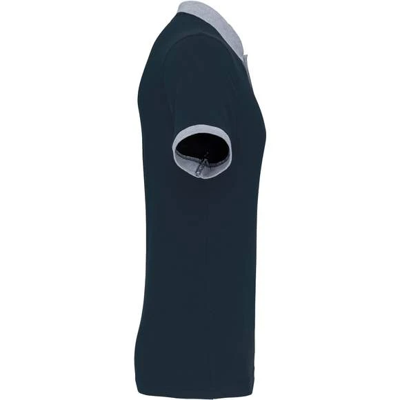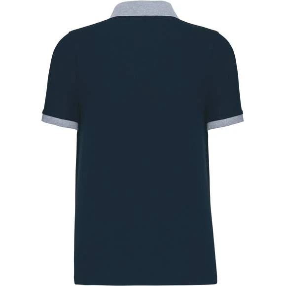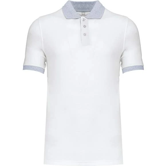100% coton piqué pré-rétréci (Oxford Grey : 90% coton / 10% viscose). Bord-côte contrasté au col et bas de manches. Bande de propreté encolure contrastée. Patte de boutonnage intérieure contrastée avec 3 boutons. Finition double aiguille au bas de vêtement. Grammage : 180g/m²