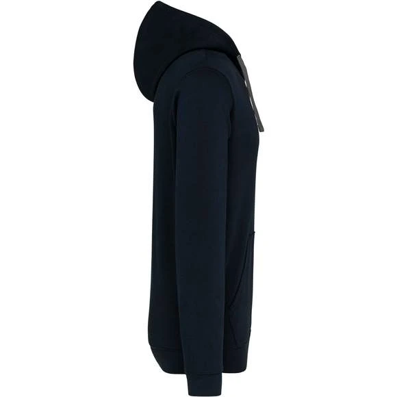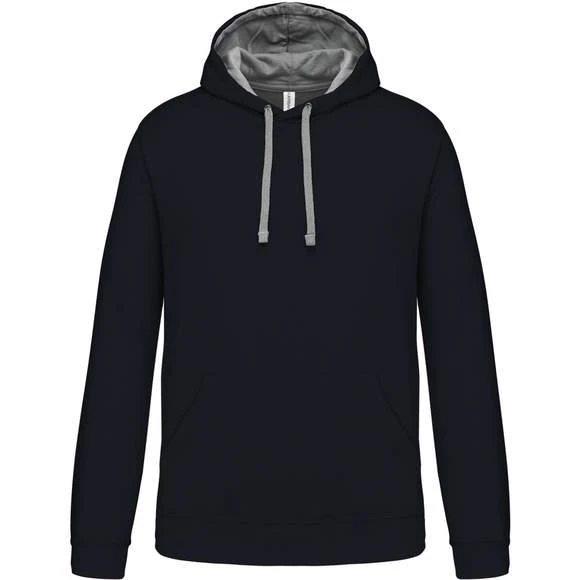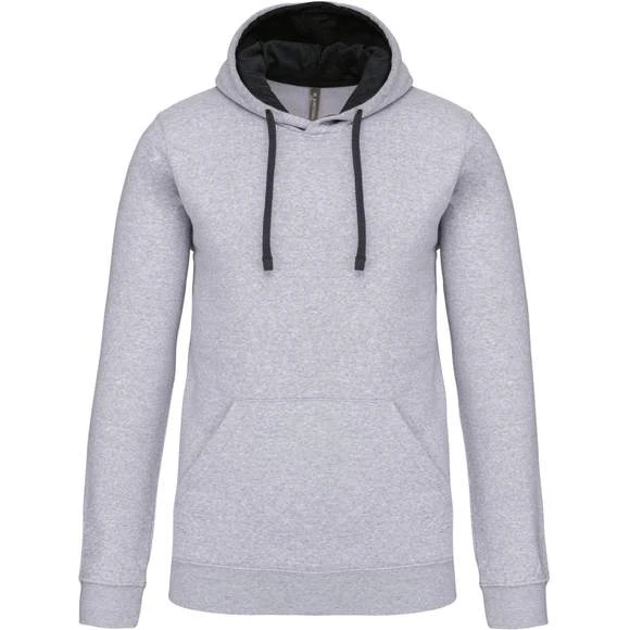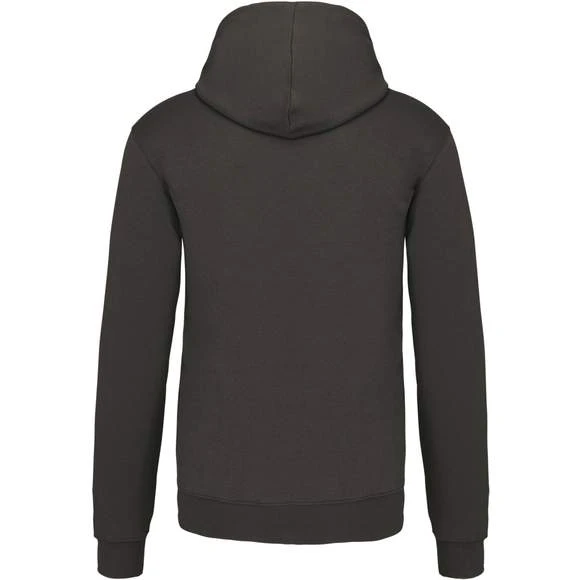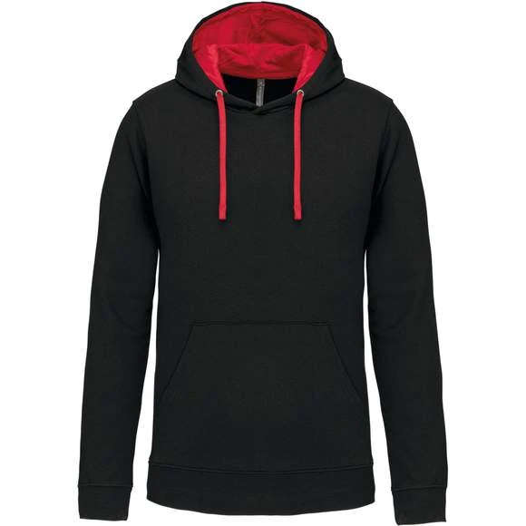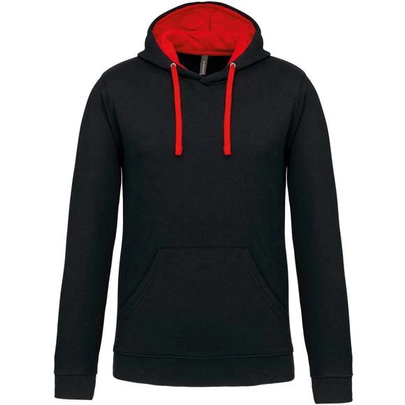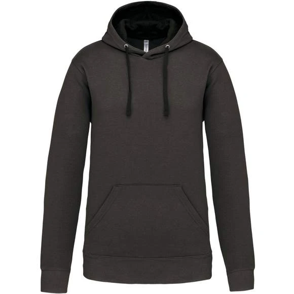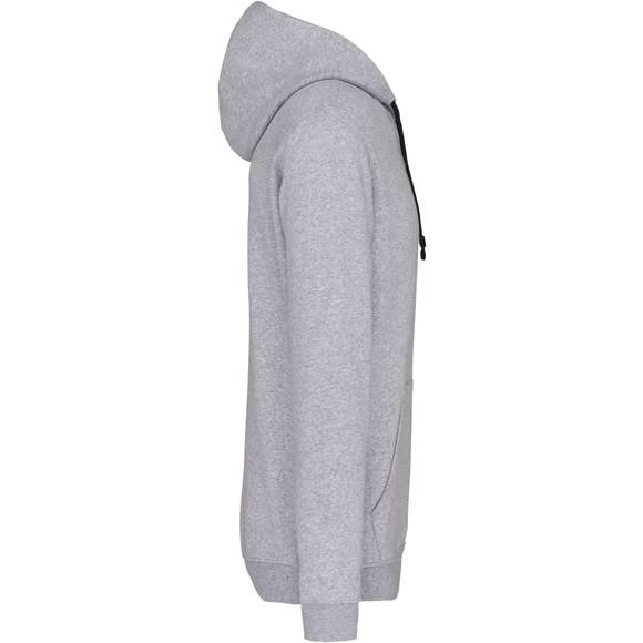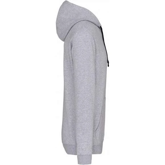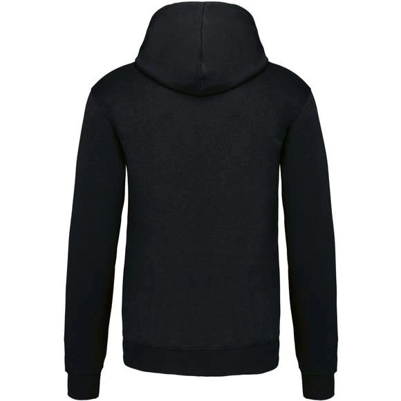 80% Coton / 20% Polyester – Molleton gratté – Poches kangourou – Finitions bords côtes aux poignets et bas du vêtement. Capuche doublée et contrastée avec cordon de serrage. Grammage : 280g/m²