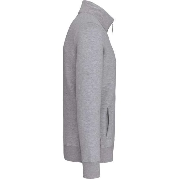 Lavage siliconé. Coupe ajustée par une découpe latérale en bord-côte. Bande de propreté ton sur ton à l’encolure. Intérieur col bord-côte avec rayures contrastées. 2 poches devant. Finition bord-côte bas de manches et bas de vêtement. Fermeture zippée YKK. Grammage : 360g/m²