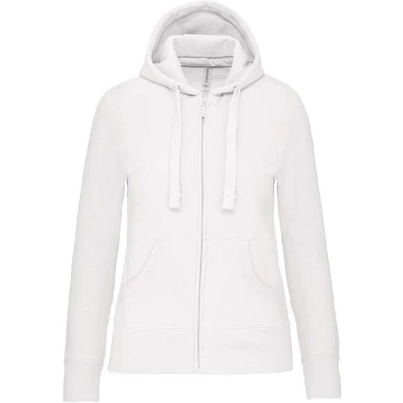 Sweat-shirt zippé capuche femme, 80% coton peigné / 20% polyester. molleton gratté. bande de propreté contrastée à l’encolure (navy pour le coloris oxford grey et oxford grey pour tous les autres coloris). capuche doublée en nid d’abeille. poches kangourou. bord-côte bas de manches et de vêtement. fermeture zippée ykk®. Grammage : 300g/m²