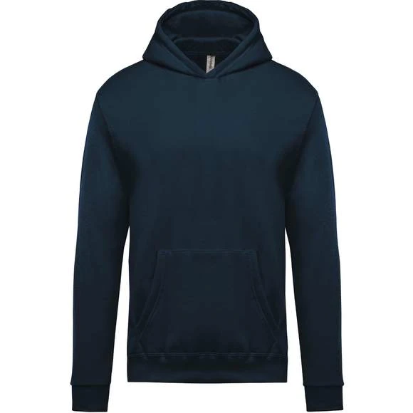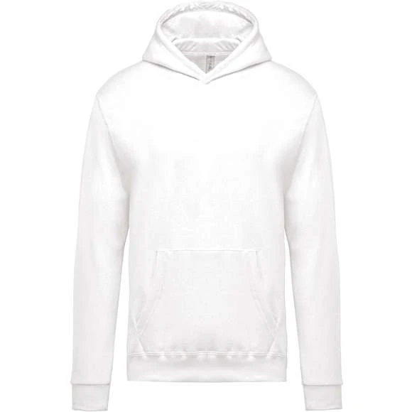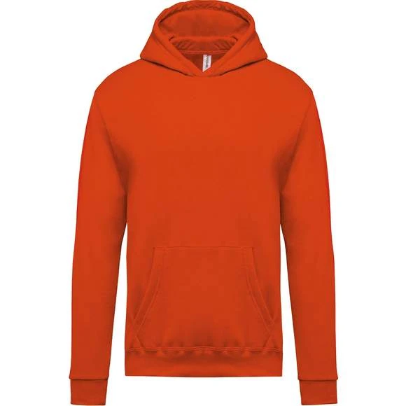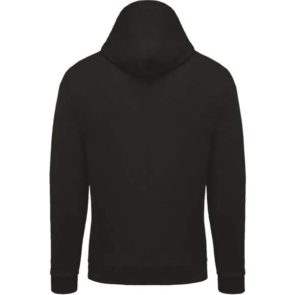 80% coton / 20% polyester. Molleton gratté. Manches montées. Coupe tubulaire. Capuche doublée. Poches Kangourou. Finition bord-côte bas de manches et de vêtement. Grammage : 280g/m²