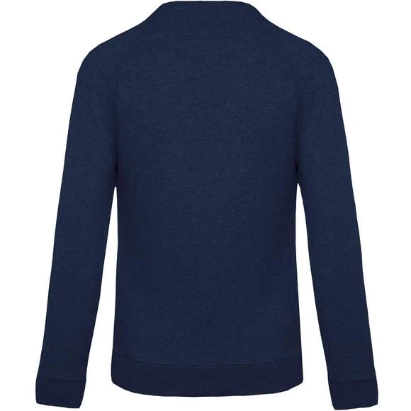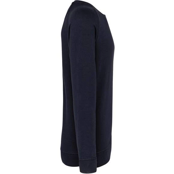 80% coton biologique / 20% polyester certifié OCS Blended – Organic Content Standard. Molleton non gratté (French Terry). Coupe mode. Bord-côte col, bas de manches et de vêtement. Bande de propreté chevron intérieur col et application en V à l’encolure. Pas d’étiquette de marque au col, uniquement une puce de taille pour faciliter la personnalisation. Grammage : 300g/m²