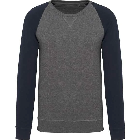 Version femme : Sweat-shirt BIO bicolore col rond manches raglan femme
