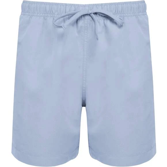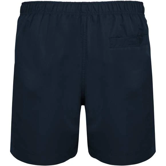 Short de bain écoresponsable pour homme. Tissu sergé. Coupe ajustée. 2 poches côtés ouvertes avec sac de poche en maille filet. Ceinture élastiquée avec cordon de serrage plat. Slip intérieur en maille filet avec finition biais élastiqué pour plus de confort. Poche arrière passepoilée avec fermeture bande auto-agrippante. Double aiguille et point d’arrêt à l’entrejambe et sur les côtés. Etiquette de marque Tear Away. Certifié STANDARD 100 by OEKO-TEX® N° CQ 1007/7, IFTH. Composition : 100% polyester recyclé post-consumer. Grammage : 120g/m²
