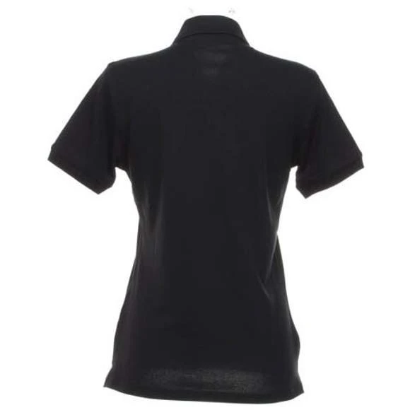 210 g/m², 98 % coton peigné piqué, 2 % Lycra, patte de boutonnage 3 boutons, col et bord des manches à côtes plates, fentes latérales, couple plus ample que la plupart des autres polos femme. Grammage : 210g/m²