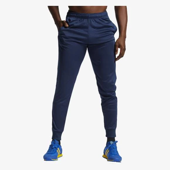 Pantalon pour entrainement, avec ceinture élastique ajustable avec cordons de serrages interieurs. Poches latérales. Bas serrés et zip. Étiquette détachable. Composition : 100% polyester interlock. Grammage : 220g/m²