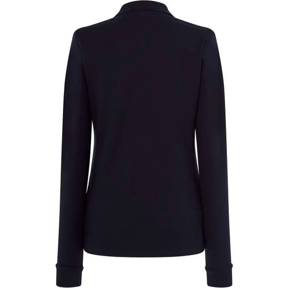 Polo manches longues femme 200. Maille piquée. Plaquette 3 boutons ton sur ton. Fentes latérales. Coupe cintrée. Composition : 100% coton peigné prérétréci Grammage : 200g/m²