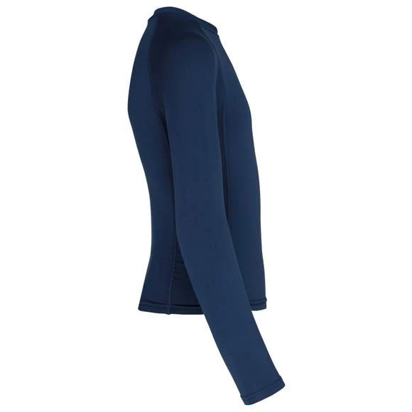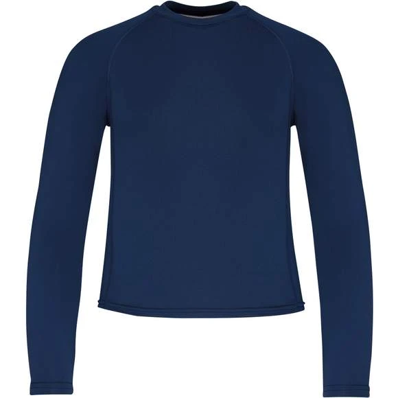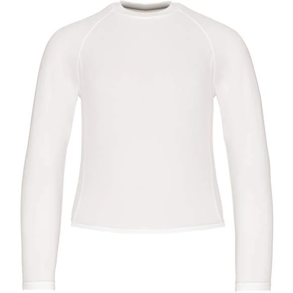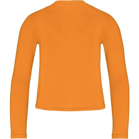 T-shirt double peau sport manches longues enfant : 88% polyester / 12% élasthanne. Tissu à séchage rapide. Encolure ronde. Points de recouvrement ton sur ton. Finition double aiguille bas de manche et de vêtement. Grammage : 200g/m²