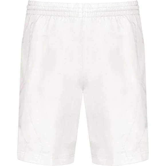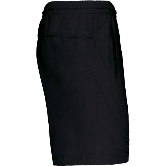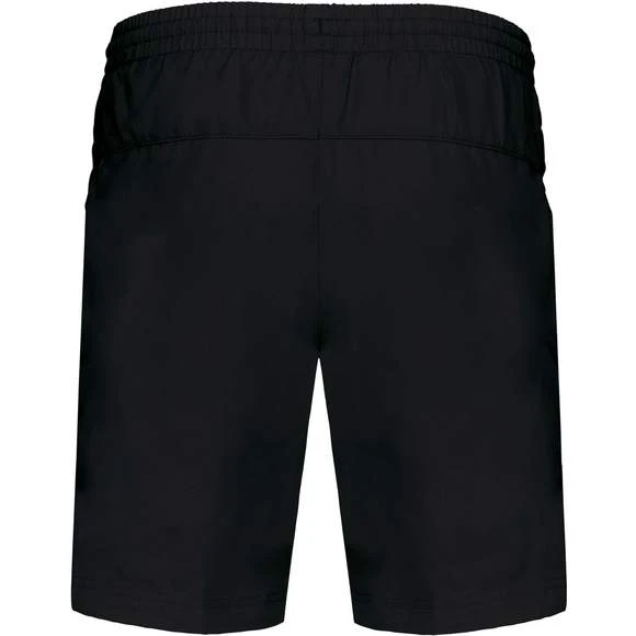 Short sport : 100% polyester à séchage rapide. 2 poches côtés. Taille élastiquée avec cordon de serrage. Doublé maille filet. Découpe côté ton sur ton. Grammage : 100g/m²