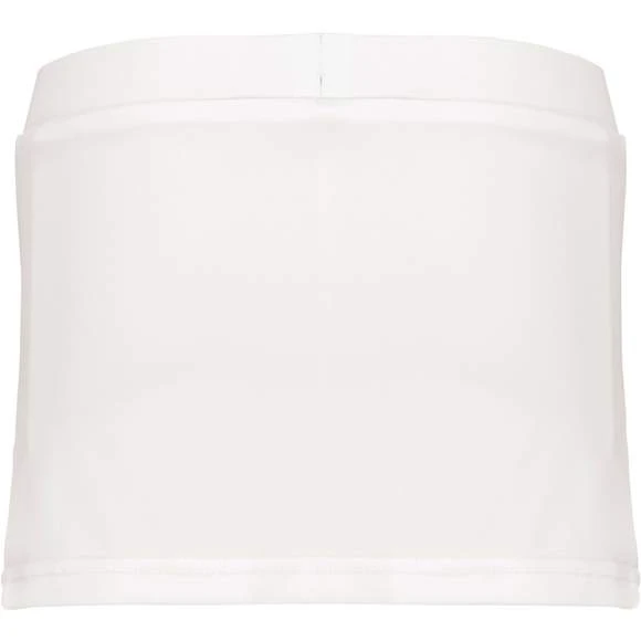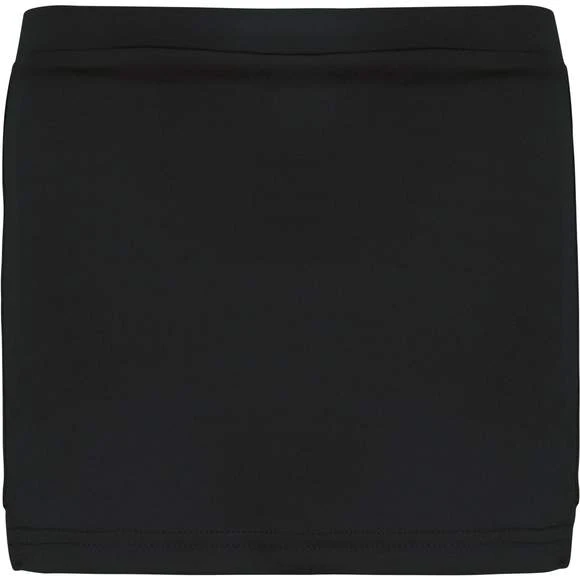 Jupe tennis enfant : 100% polyester interlock. Doublure short 86% polyester / 14% élasthanne. Ceinture élastiquée. Sous-short avec 2 poches balles. Grammage : 150g/m²
