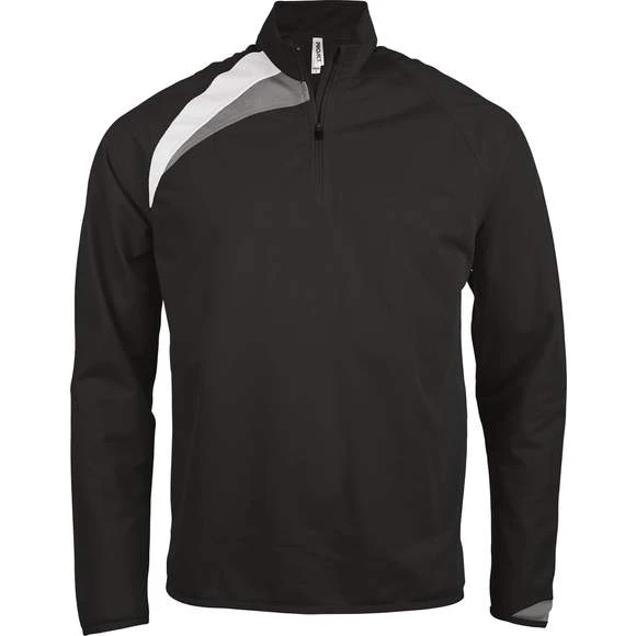 100% polyester polytricot gratté. 1/4 zip. Empiècements contrastés corps et bas de manche. Coutures en points de recouvrement ton sur ton. Bas de vêtement et manches avec bande élastique. Grammage : 160g/m²