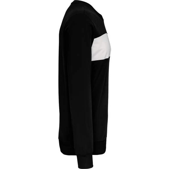 100% polyester. Poly tricot. Bande contrastée devant hauteur environ 9 cm. Encolure ronde. Bande de propreté intérieur col. Bord-côte avec élasthanne au col, bas de manches et de vêtement. Grammage : 210g/m²