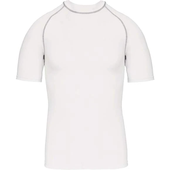 92% polyester / 8% élasthane. Maille extensible à séchage rapide. Protection UV 40+ conforme aux éxigences de la norme EN13758-1. Manches courtes. Col montant. Coupe trés près du corps. Boucle élastique insérée dans l’ourlet devant permettant de passer le cordon du short afin de stabiliser le t-shirt. Surpiqûres contrastée. Finition double aiguilles aux manches et bas de vêtement. Grammage : 160g/m²