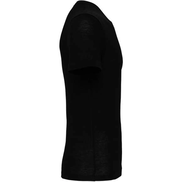 50% Polyester / 25% Coton / 25% Viscose. Tissu jersey. Bande de propreté dans le col ton sur ton. Finition double aiguille bas de manches et de vêtement. Pas d’étiquette de marque au col, uniquement une puce de taille pour faciliter la personnalisation. Grammage : 130g/m²