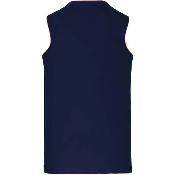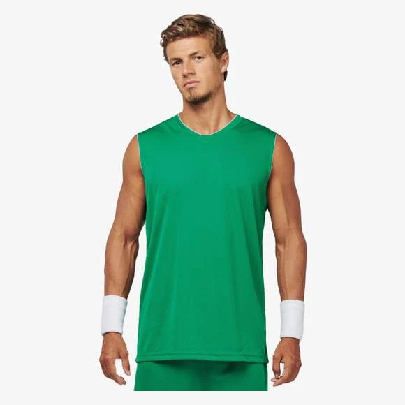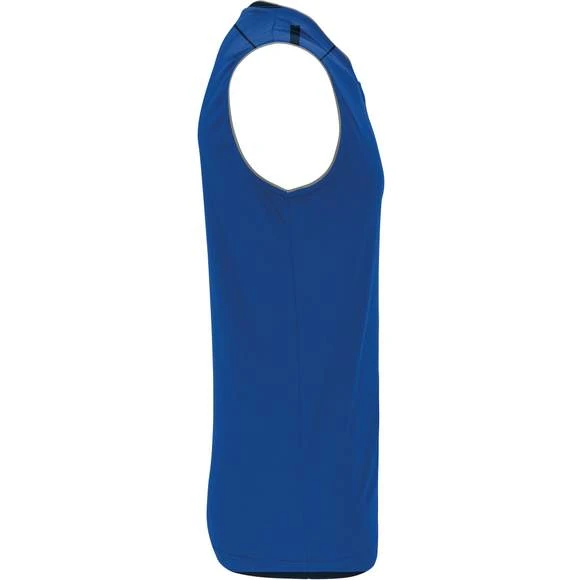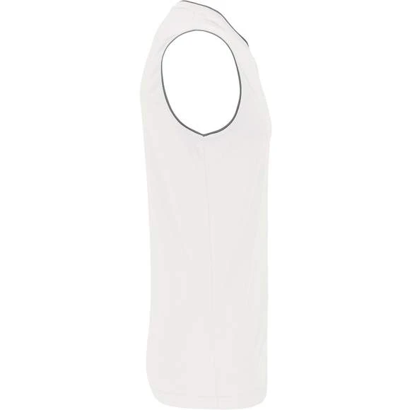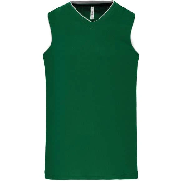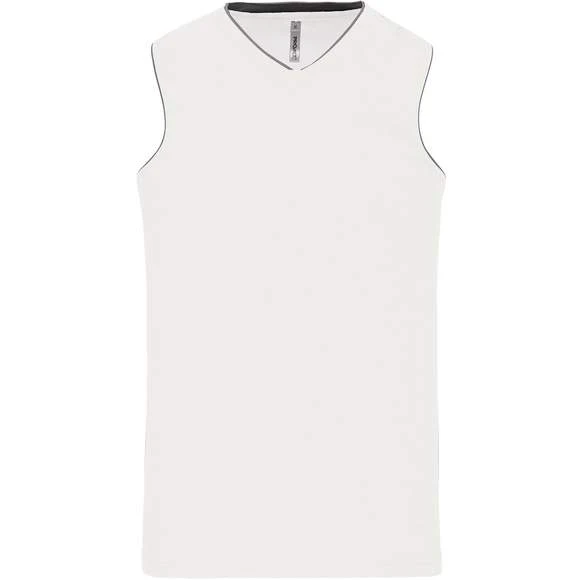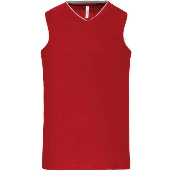 Maillot basket-ball : 100% polyester. Tissu à séchage rapide. Encolure en v. Passepoils contrastés sur col et emmanchures. Finition double aiguille au bas du vêtement. Grammage : 160g/m²