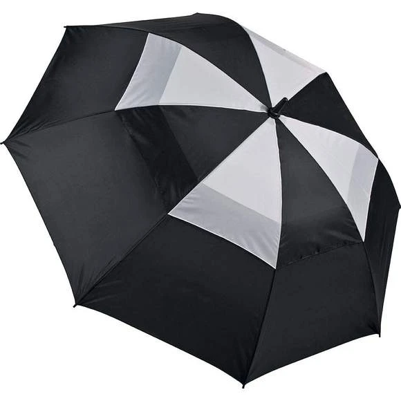 Parapluie de golf 29,5  » (75 cm), ouverture manuelle avec curseur de sécurité. Mât et baleines en fibres de verre, embouts de baleine en polypropylène. Toile en polyester 210T avec double voilure bicolore anti rafale sur le haut. Poignée ergonomique et antidérapante. Housse zippée de couleur contrastée.
