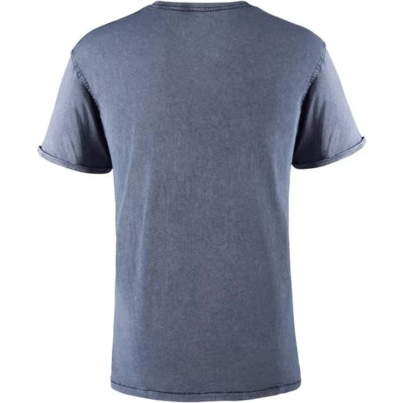 T-shirt manches courtes effet jeans. Col rond maille côte 1×1, avec bande de propreté à l’encolure d´épaule à épaule. Double couture sur emmanchures. Ouverture sur les manches avec ourlet. Étiquette adhésive. Duo concept. Composition : 100% coton peigné. Grammage : 160g/m²