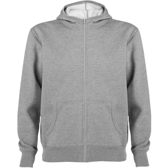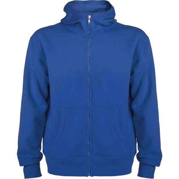 Sweat-shirt capuche avec fermeture éclair. Finition côte 1×1 sur le contour de la capuche et des poches. Couleur du cordon de serrage ton sur ton. Pas de cordon sur les tailles enfant. Poche kangourou. Poignets et ceinture en côte 1×1 avec élasthanne. 80% polyester/20% coton, maille molleton 280 g/m2. Grammage : 280g/m²